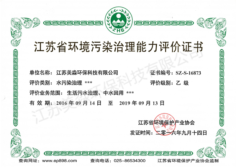 江蘇省環境污染治理工程設計能力評價證書-丙級